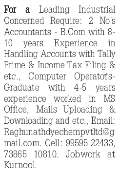 బోర్డర్ సెక్యూరిటీ ఫోర్సులో అసిస్టెంట్ సబ్ ఇన్స్పెక్టర్(స్టెనోగ్రాఫర్), హెడ్ కానిస్టేబుల్(మినిస్టీరియల్) పోస్టుల భర్తీకి దరఖాస్తులు కోరుతోంది. మొత్తం పోస్టుల సంఖ్య: 323 పోస్టుల వివరాలు: అసిస్టెంట్ సబ్ ఇన్స్పెక్టర్(స్టెనోగ్రాఫర్)–11, హెడ్ కానిస్టేబుల్(మినిస్టీరియల్)–312 తదితరాలు. అర్హత: ఇంటర్మీడియట్ లేదా సీనియర్ సెకండరీ స్కూల్ సర్టిఫికేట్(10+2), ఇంగ్లిష్/హిందీ షార్ట్హ్యాండ్, టైపింగ్ పరీక్షల్లో ఉత్తీర్ణులై ఉండాలి. వయసు: 18 నుంచి 25 ఏళ్ల మధ్య ఉండాలి. జీతం: నెలకు రూ.29,200 నుంచి రూ.92,300 (ఏఎస్ఐ), రూ.25,500 నుంచి రూ.81,100 (హెచ్సీ) ఎంపిక విధానం: రాతపరీక్ష, ఫిజికల్ మెజర్మెంట్, షార్ట్హ్యాండ్ టెస్ట్, టైపింగ్ స్పీడ్ టెస్ట్, డాక్యుమెంటేషన్, మెడికల్ ఎగ్జామినేషన్ ఆధారంగా ఎంపికచేస్తారు. దరఖాస్తు విధానం: ఆన్లైన్ ద్వారా దరఖాస్తు చేసుకోవాలి. ఆన్లైన్ దరఖాస్తులకు చివరితేది: 06.09.2022 వెబ్సైట్: https://rectt.bsf.gov.in Visit Gemini Internet for applications with your own ATM. Gemini Internet, D L Road, Hindupur 9640006015 | మీ స్వంత ATMతో...